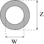 Witek wybrał się na jarmark. W mgnieniu oka zlokalizował stoisko z najlepszymi obwarzankami. Nie zastanawiając się długo kupił jedną porcję obwarzanków. Warto wiedzieć, że Bajtockie obwarzanki są zawsze nawlekane na patyk, a nie na kółko, jak na większości naszych jarmarków. Obwarzanki można zdejmować z lewego bądź prawego końca patyka. Każdego obwarzanka charakteryzują dwie wartości: średnica zewnętrzna (Z) i średnica wewnętrzna (W). Jest to przedstawione na rysunku.