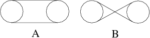 Istnieją dwa rodzaje połączeń między dwoma różnymi kołami. Jeśli koło kręci się w pewną stronę, to koło połączone z nim sposobem A kręci się w tę samą stronę, zaś połączone sposobem B - w przeciwną.