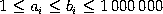W kolejnych wierszach standardowego wyjścia należy zapisać opisy znalezionych parami rozłącznych przedziałów. W każdym wierszu ma być zapisany opis jednego przedziału w postaci dwóch liczb całkowitych oddzielonych pojedynczym odstępem, będących odpowiednio początkiem i końcem tego przedziału. Przedziały w pliku wyjściowym powinny być zapisane w rosnącej kolejności.