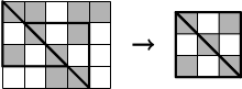 jednakowych kwadratowych pól. Każde pole jest pomalowane na biało lub czarno, ale
