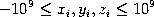 Każdy z kolejnych wierszy zawiera współrzędne jednej planety w postaci trzech liczb całkowitych , , ().