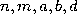 W pierwszym wierszu wejścia znajduje się pięć liczb całkowitych